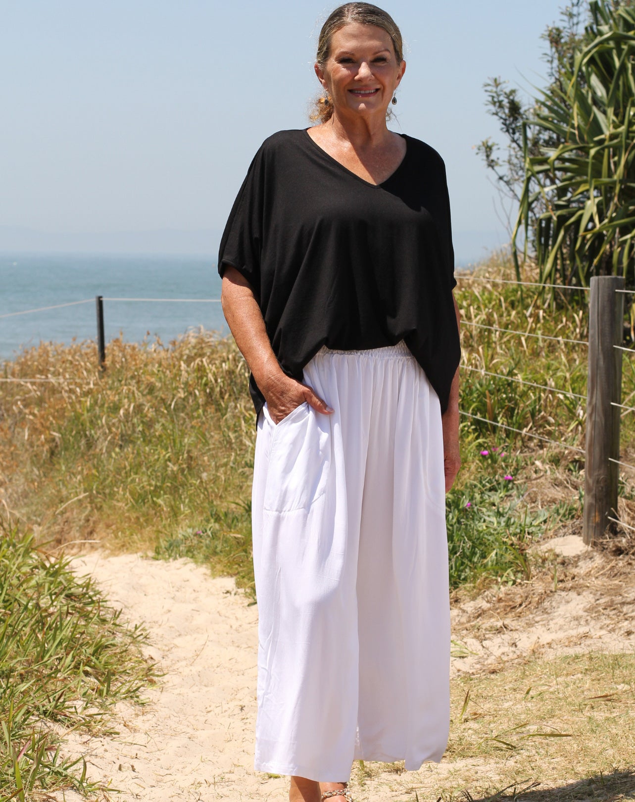 The most comfiest Everyday Pant in White, the epitome of comfort and style. Made from soft, breathable Twill, these pants are perfect for all-season wear. The versatile breezy style elevates your work or weekend wardrobe, while the super big pockets and elasticised waist offer practicality and ease. Our clever Everyday Pant is a must-have addition to any wardrobe.