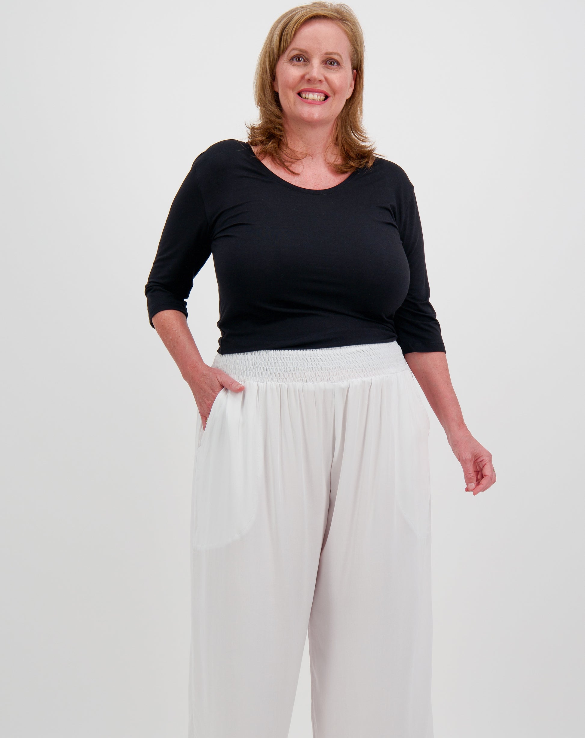 *We recommend to size up if you prefer a little more room around waist and chest area. Mell usually wears a ML in most of our range but has sized up to a XL in the Scoop Tee. She wears a size 16 AU.